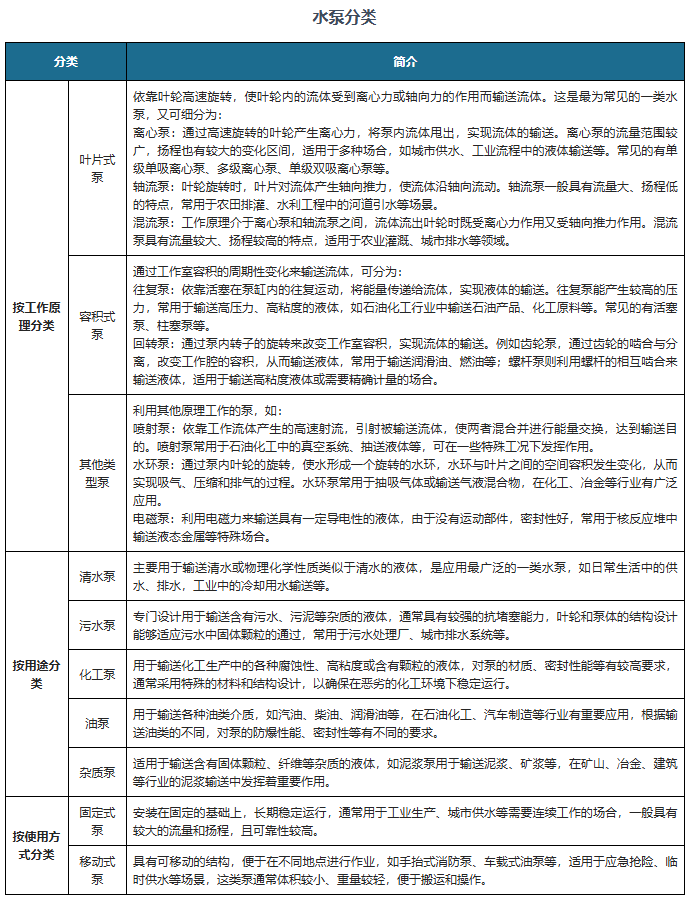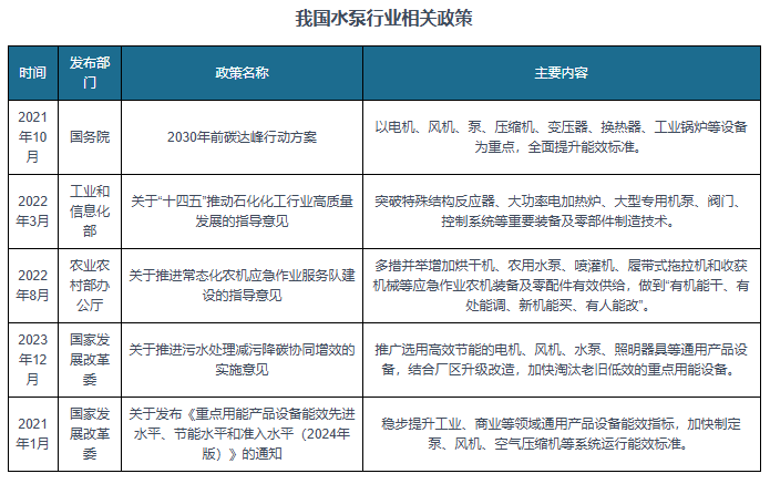水泵属于通用机械设备,是国平易近经济成长的根本之一。近年来,正在《关于推进常态化农机应急功课办事队扶植的指点看法》等相关政策等要素鞭策下,我国水泵行业成长优良,已成长为千亿级市场。